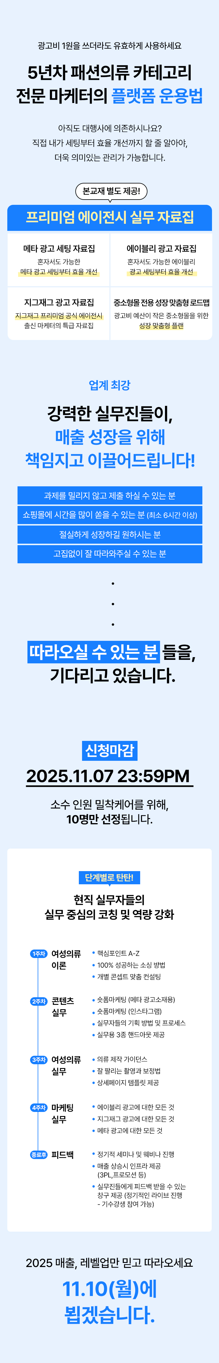 마지막이라는 글자를 결국 남기게 되는 오늘이 왔습니다. 아마 강의 들으시는 올인원 클래스 대표님들 모두가 한 목소리로 말씀하시지 않을까 싶은데요~ 아쉬움이 많이 남습니다. 전력을 다해 쏟을 수 없었던 개인적인 상황이 원망스러울 정도.. 지만 지극한 책임감과 배려 덕분에 사후 관리+자료 열람을 할 수 있어 다행임과 동시에 감사한 마음을 전합니다. 모두 사비를 들여 신청한 강의일지라도 나름 특별한 인연이라는 생각이 드는데요, 그런 의미에서 올인원 클래스 수강생 대표님들 모두 각자 자리에서 반짝 반짝 빛나시길 진심으로 바랍니다. 같은 이커머스 세상에 모인, 어쩌면 경쟁상대 이겠으나 건강한 경쟁으로 만납시다ᵔ ᵔ 감사합니다-